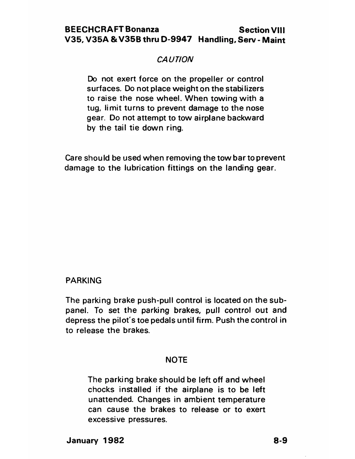 V35, V35A & V35B thru D-9947 Handling, Serv - Maint