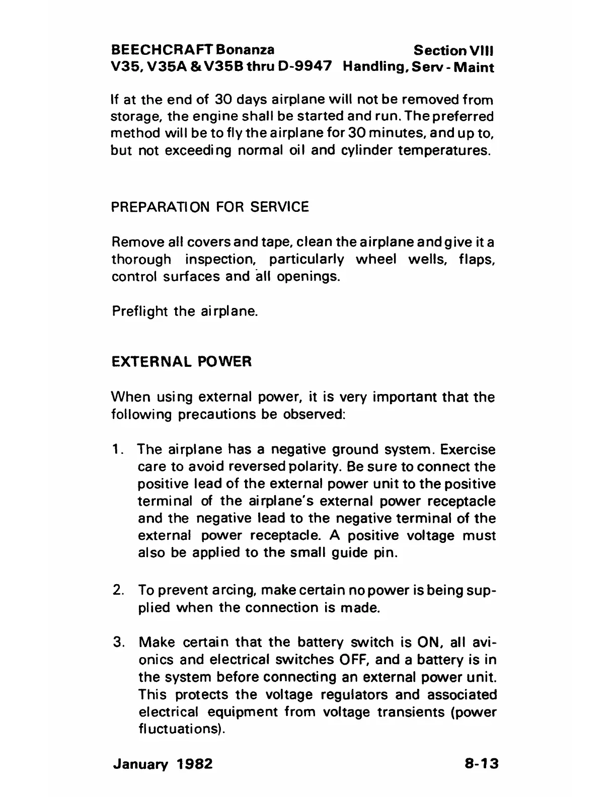 Beech Beechcraft Bonanza V35 - Preparation for Service; External Power