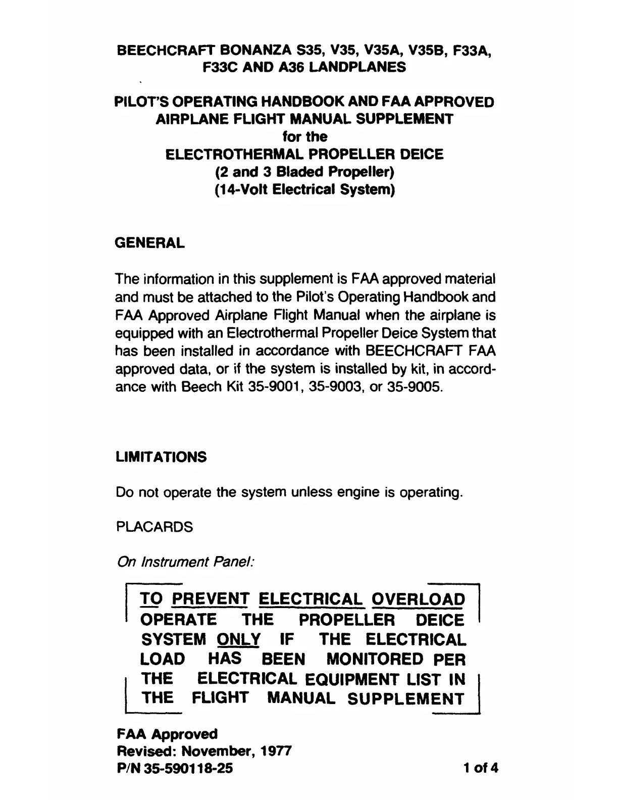 BEECHCRAFT BONANZA S35, V35, V35A, V35B, F33A,