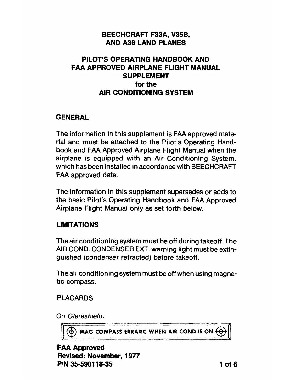 BEECHCRAFT F33A, V35B,