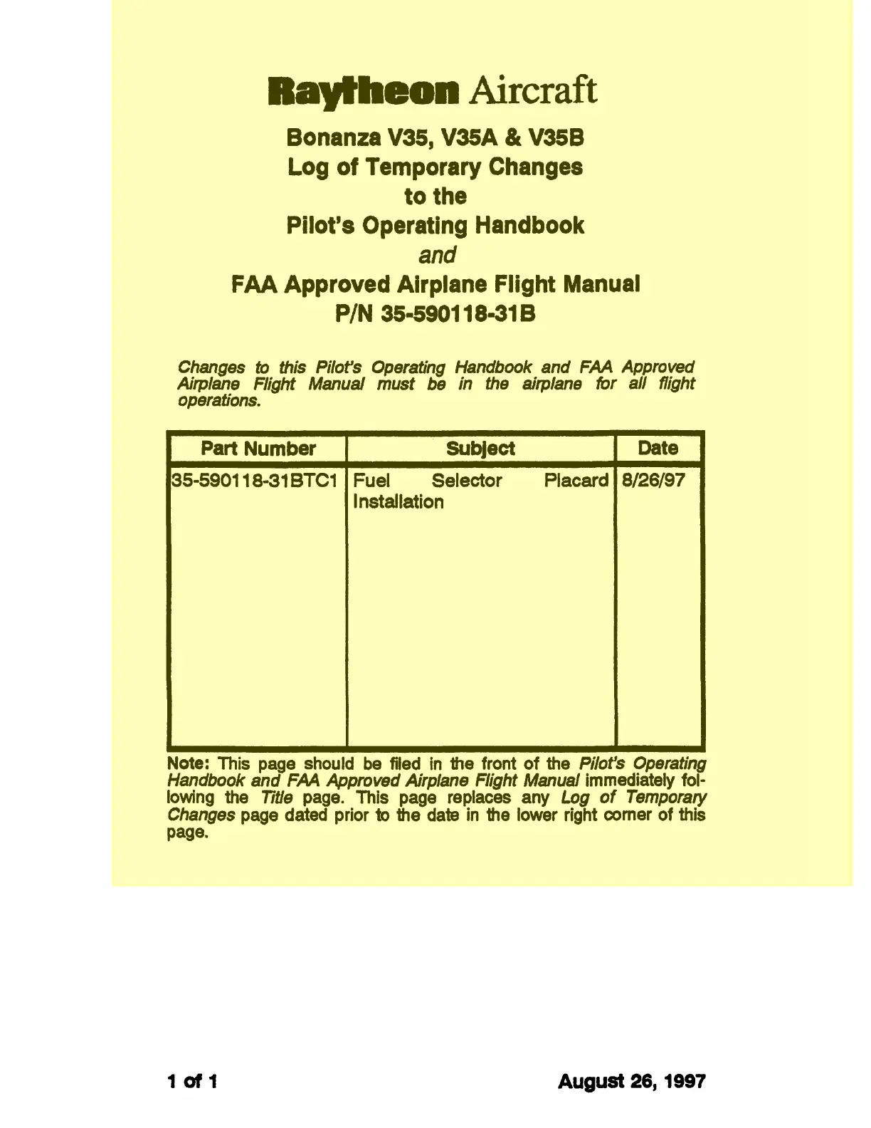 Note: This page should be filed in the front of the Pi/ors Operating