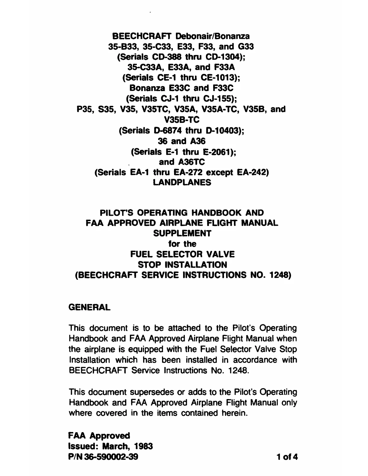 (BEECHCRAFT SERVICE INSTRUCTIONS NO. 1248)