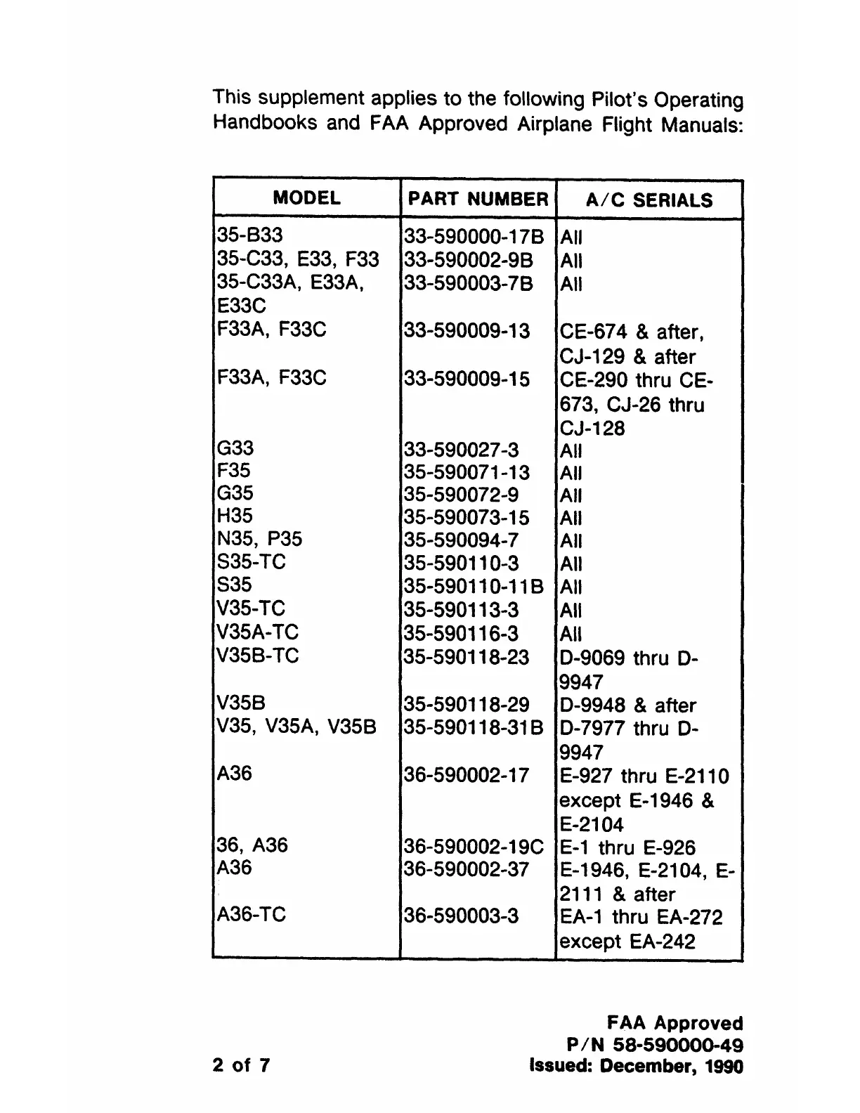 This supplement applies to the following Pilot's Operating