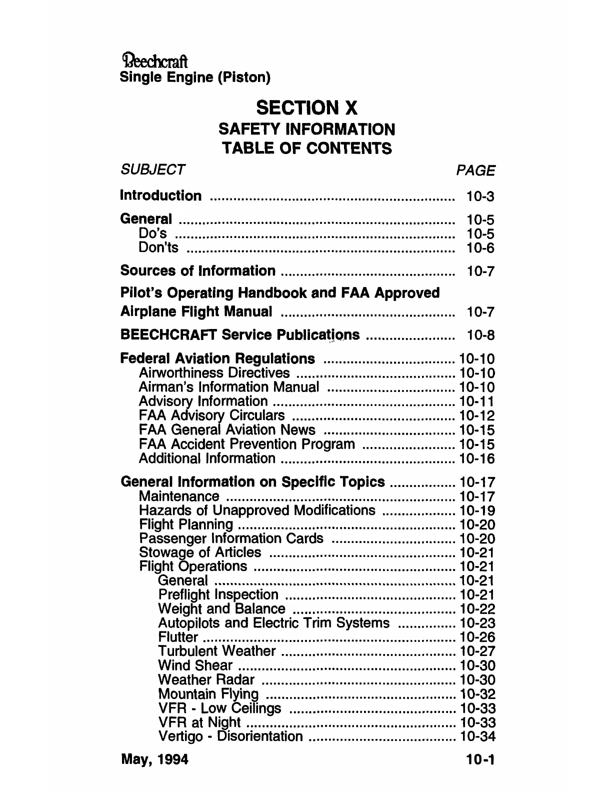 BEECHCRAFT Service Publications ................... ... . 10-8