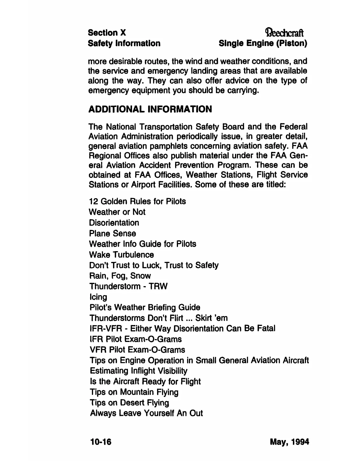 general aviation pamphlets concerning aviation safety. FAA