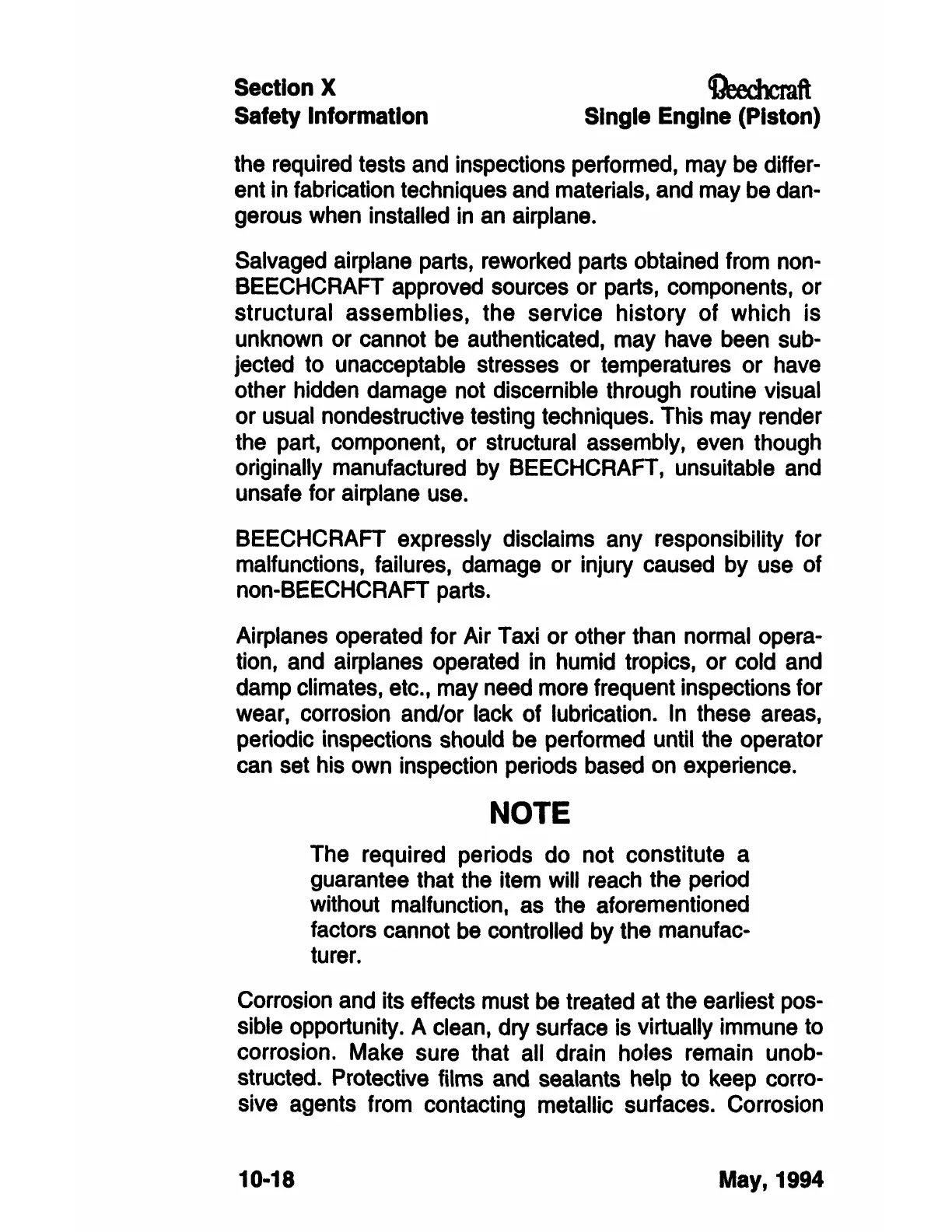 originally manufactured by BEECHCRAFT, unsuitable and