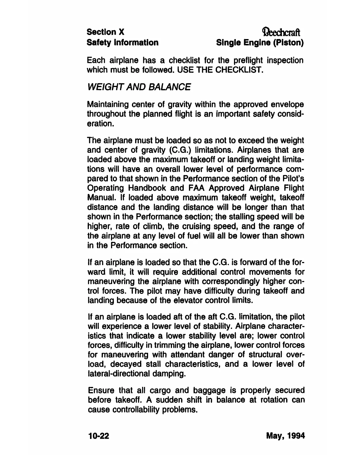 and center of gravity (C.G.) limitations. Airplanes that are