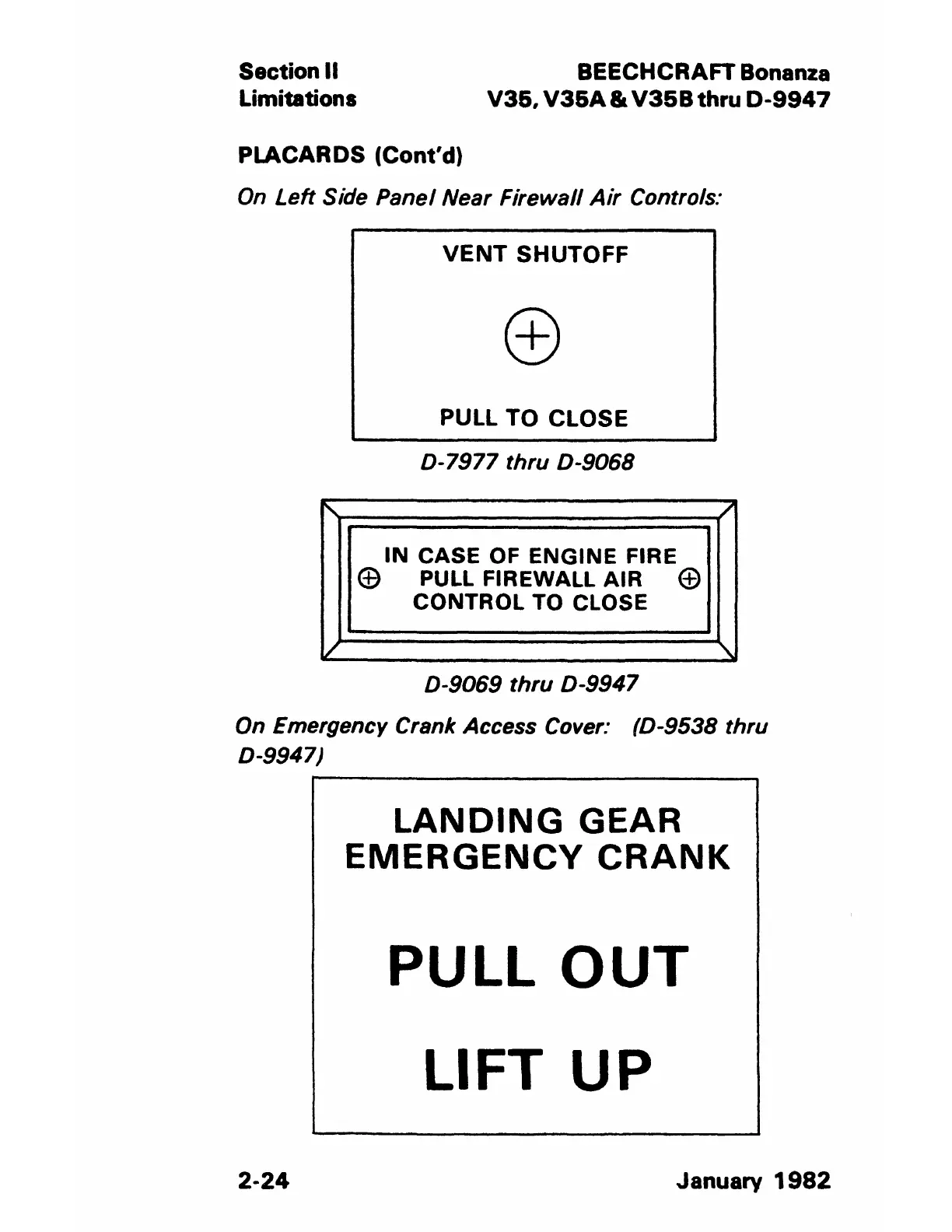 On Emergency Crank Access Cover: (D-9538 thru