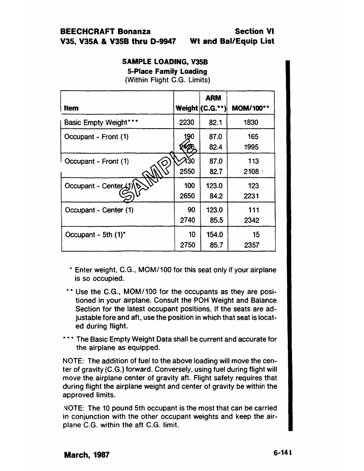 • • Use the C.G., MOM/100 for the occupants as they are posi-