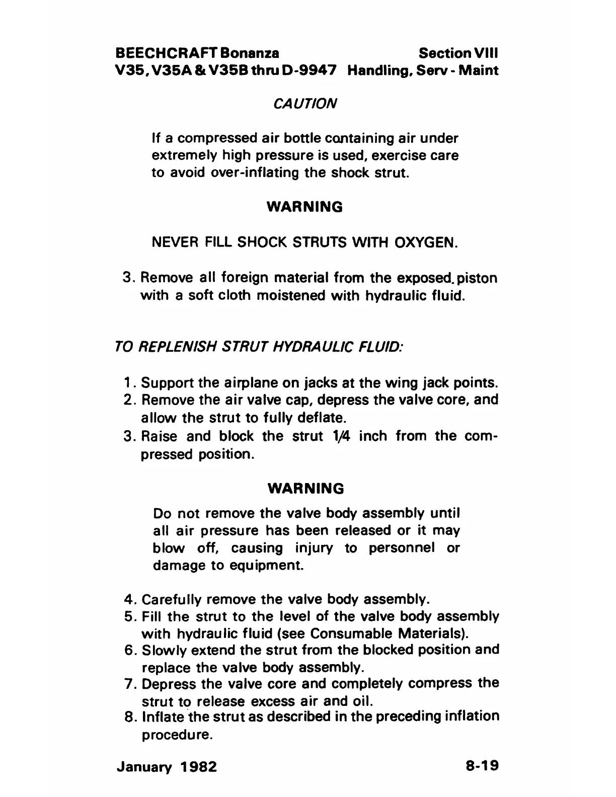 TO REPLENISH STRUT HYDRAULIC FLUID: