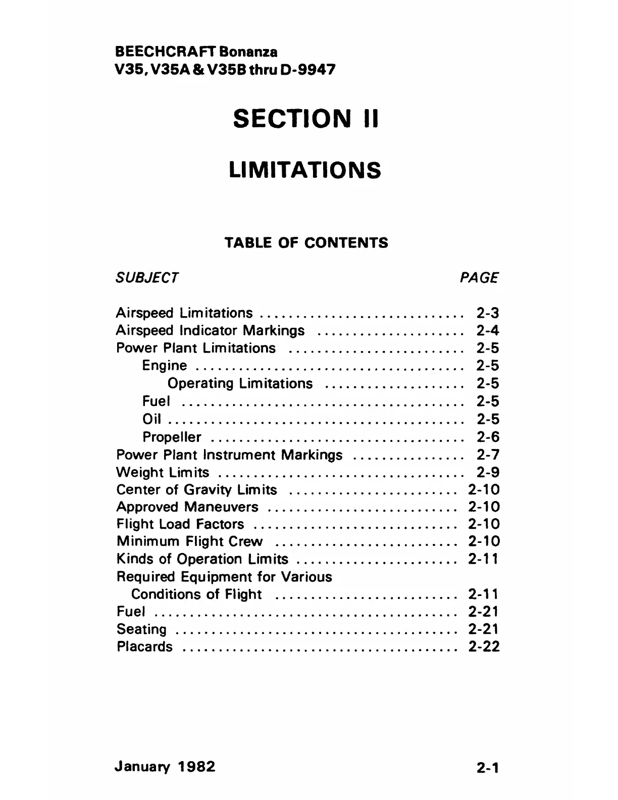 Operating Limitations . . . . . . . . . . . . . . . . . . . . 2-5