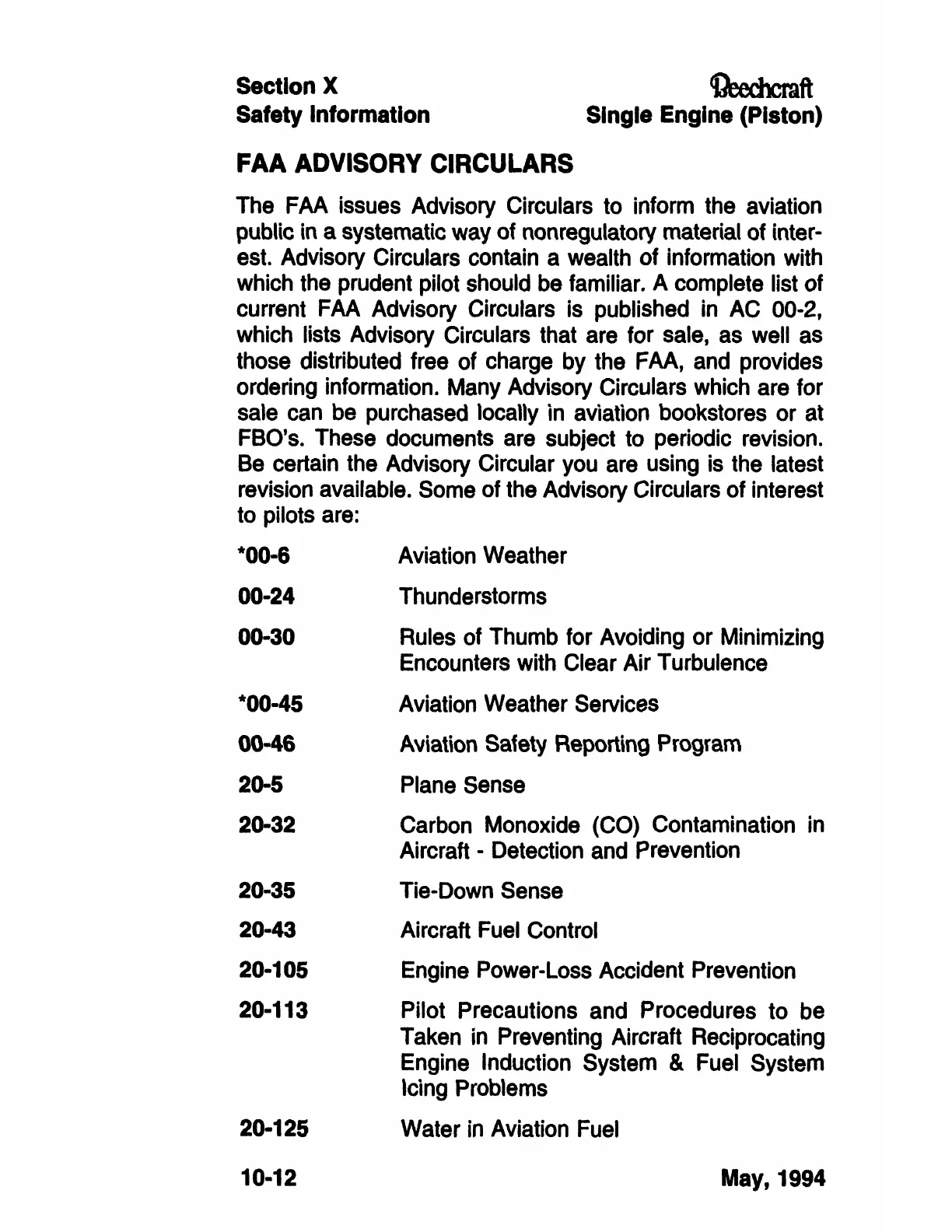 current FAA Advisory Circulars is published in AC 00-2,