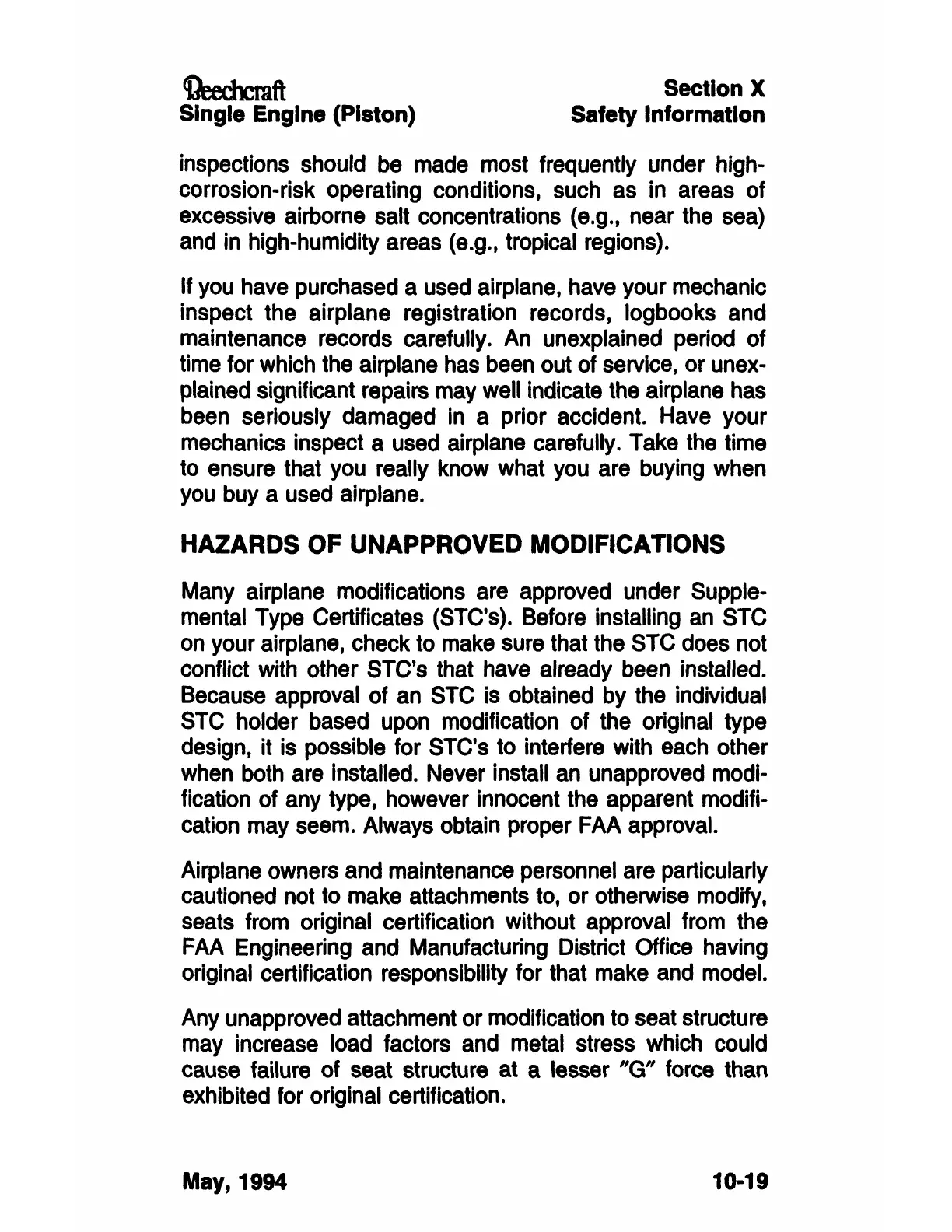 mental Type Certificates (STC's). Before installing an STC