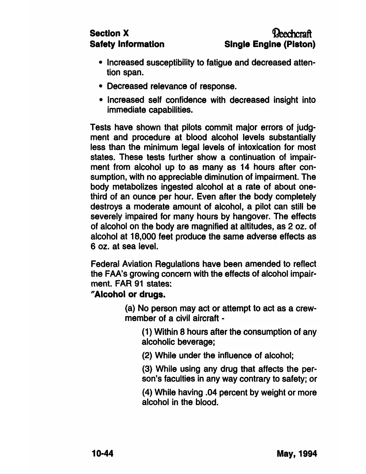 destroys a moderate amount of alcohol, a pilot can still be