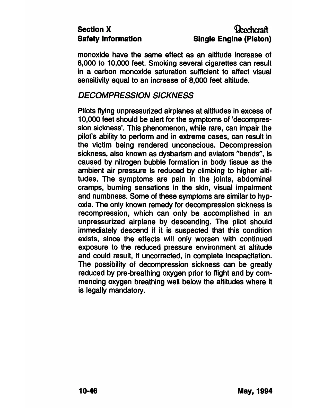 reduced by pre-breathing oxygen prior to flight and by com-