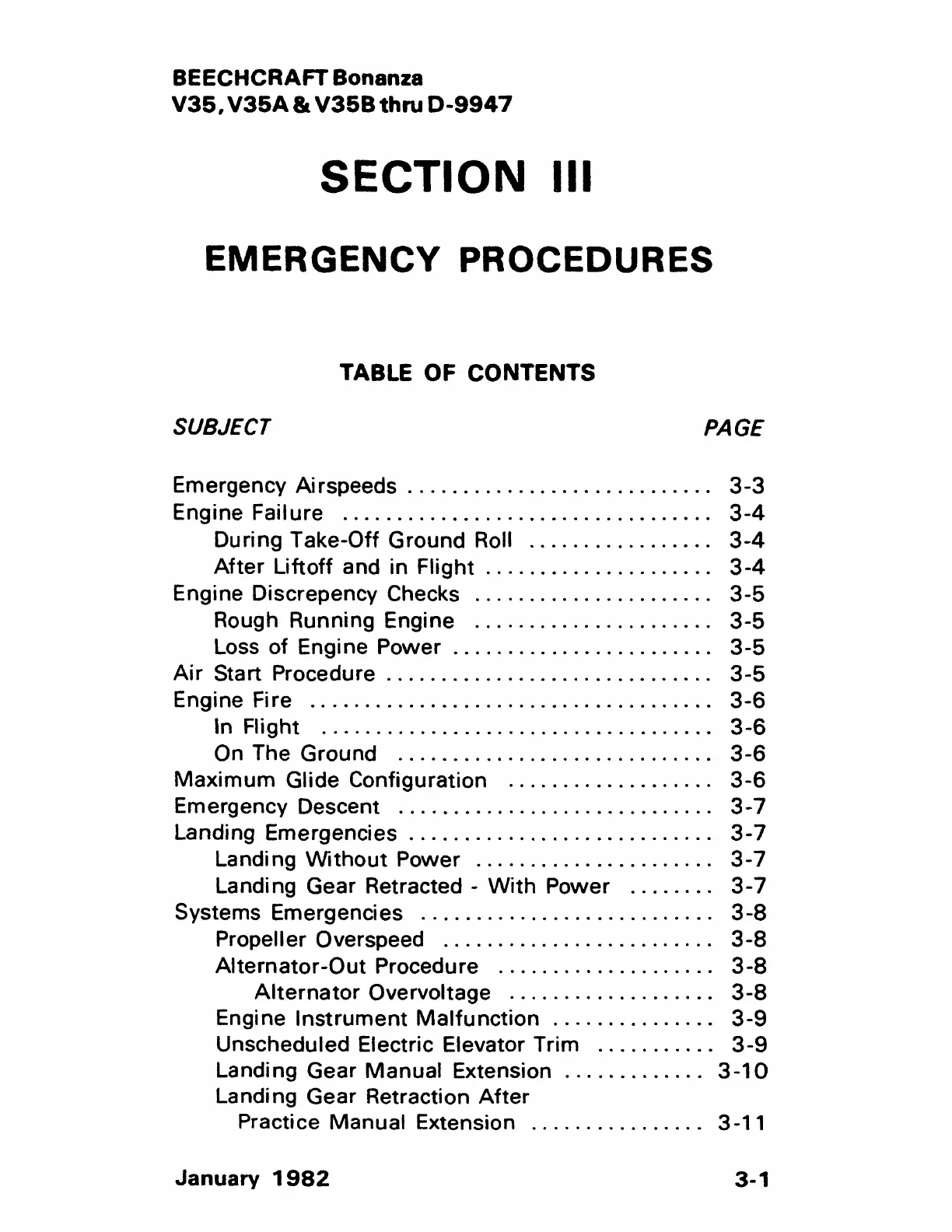 Emergency Airspeeds . . . . . . . . . . . . . . . . . . . . . . . . . . . . 3-3