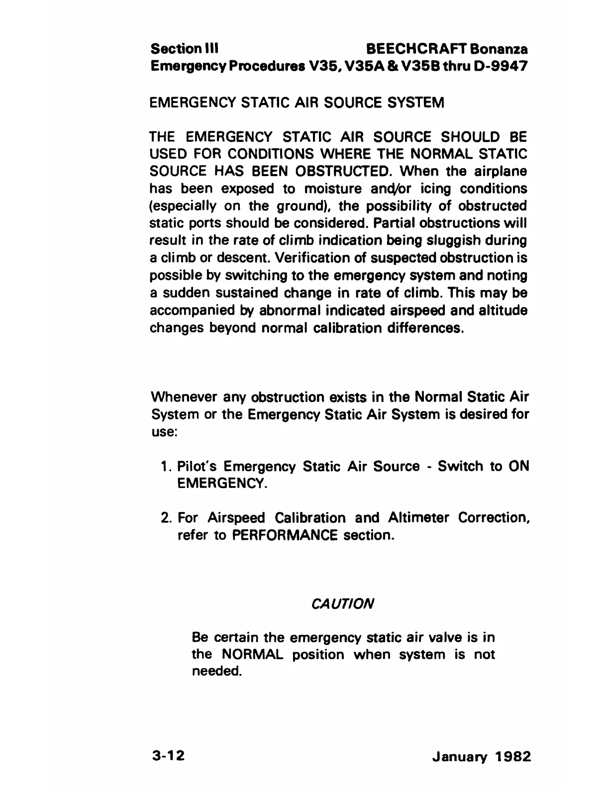 Emergency Procedures V35, V35A & V35B thru D-9947