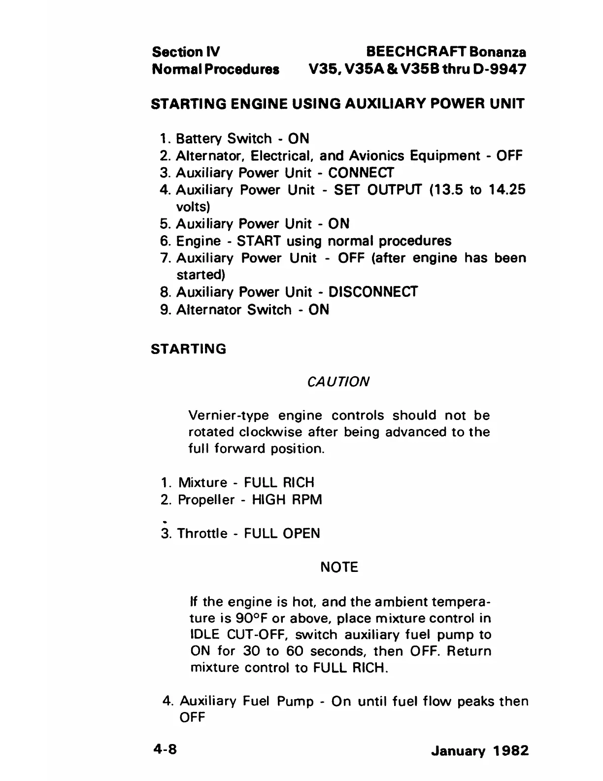 4. Auxiliary Fuel Pump - On until fuel flow peaks then