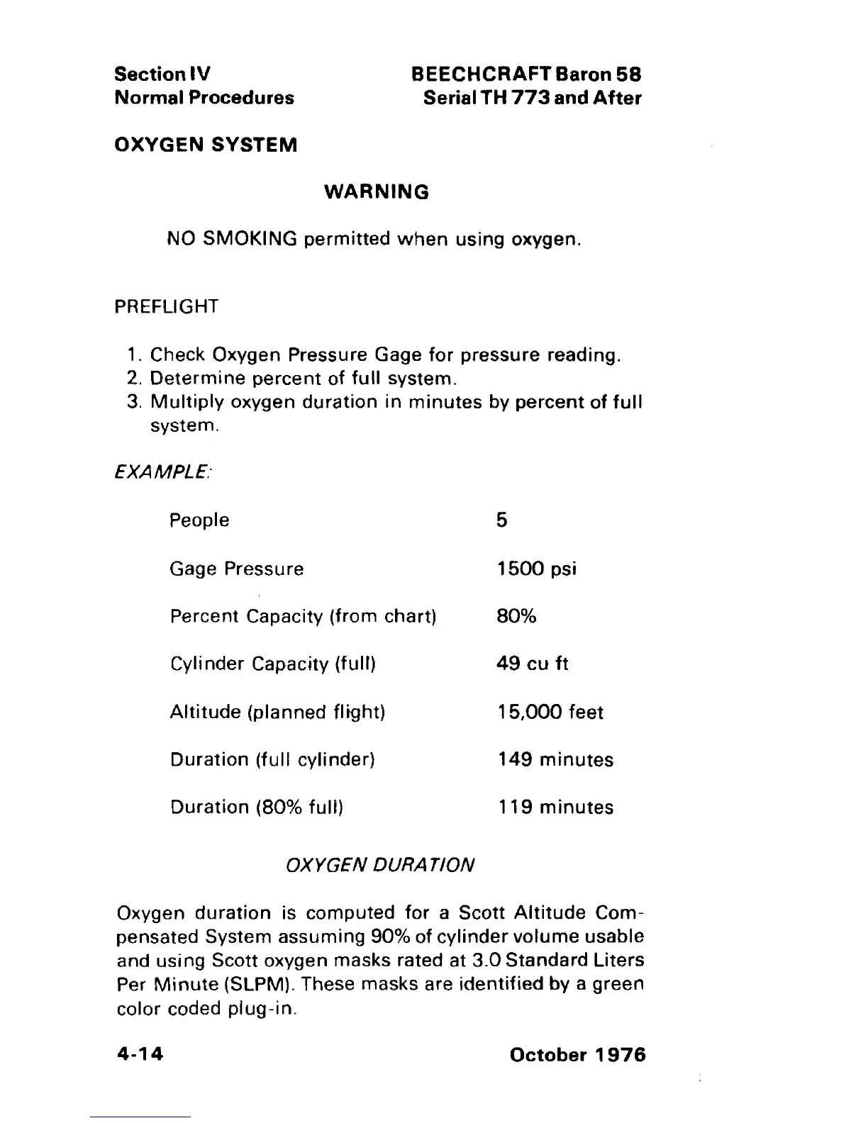 Beechcraft Baron 58 - Oxygen System; Oxygen Dura Tion