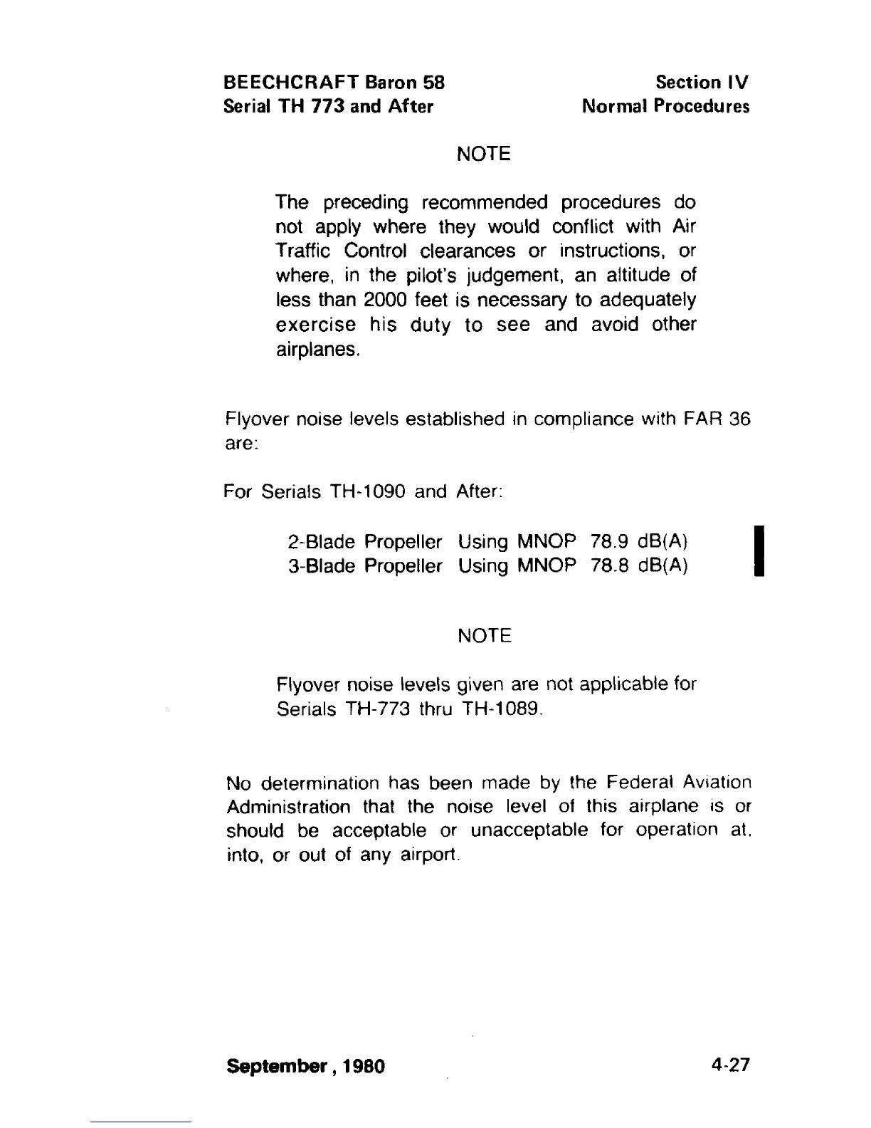 Flyover noise levels given are not applicable for