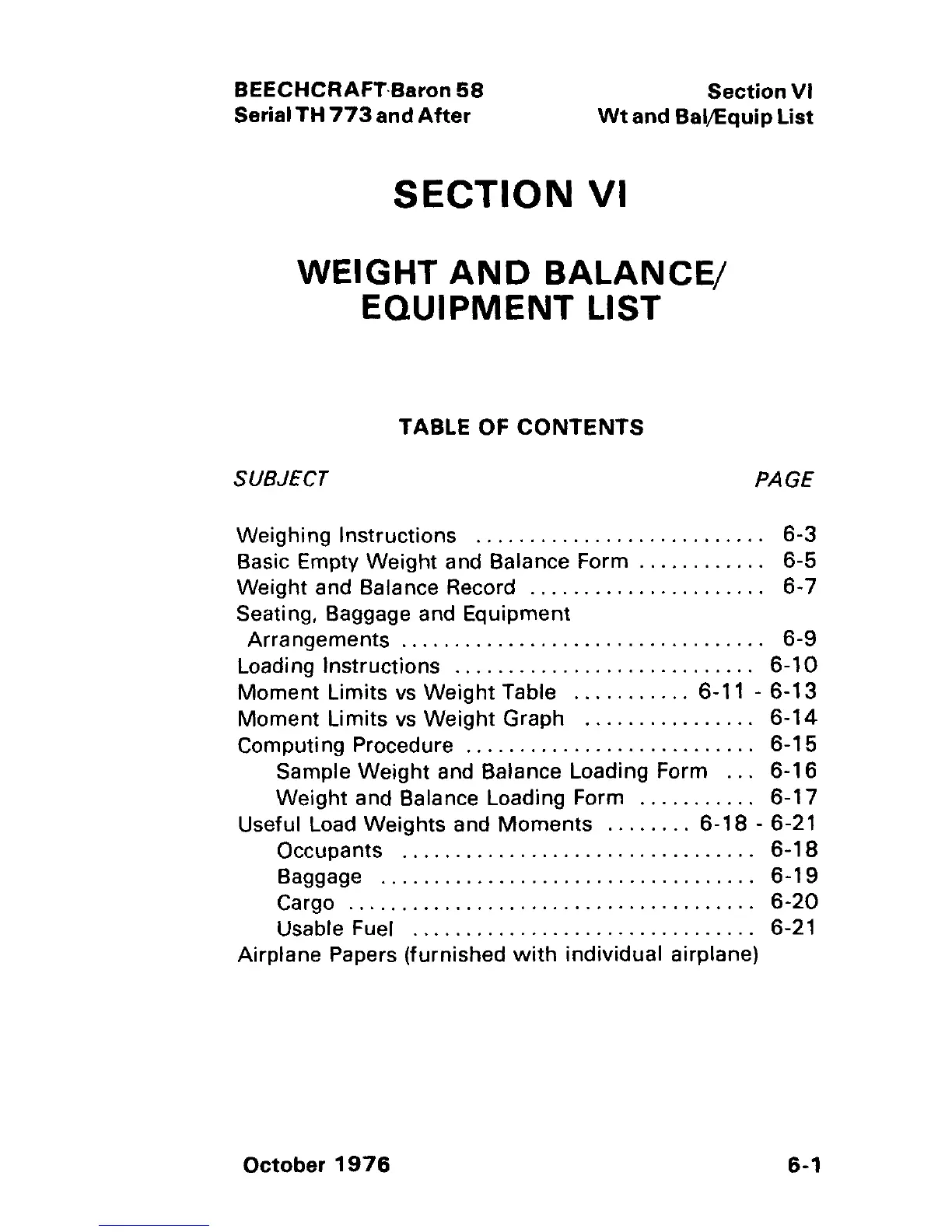 Weight and Balance Record 6-7