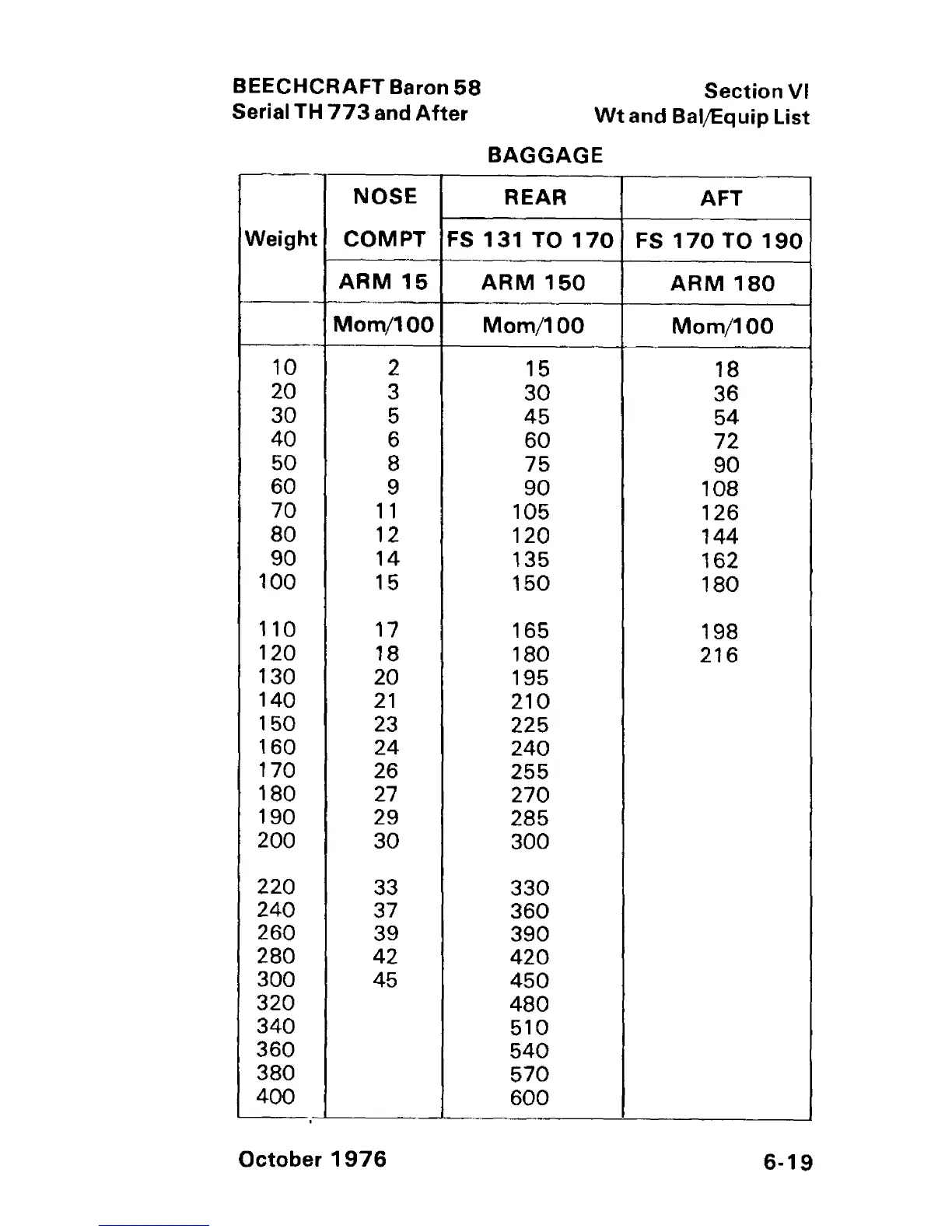 Beechcraft Baron 58 - Baggage