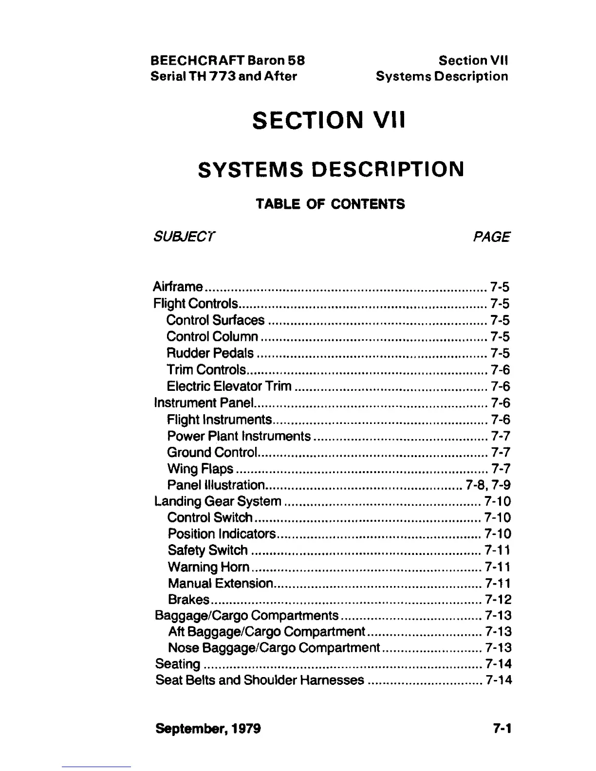 Beechcraft Baron 58 - Systems Description
