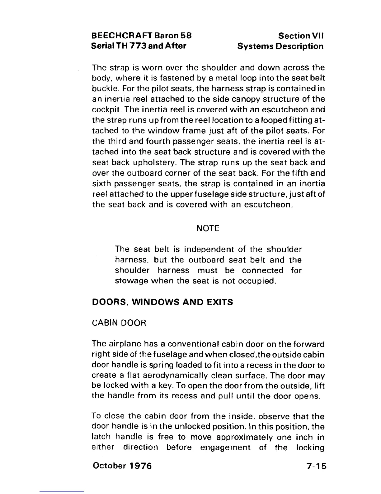 Beechcraft Baron 58 - Doors, Windows, and Exits; Cabin Door