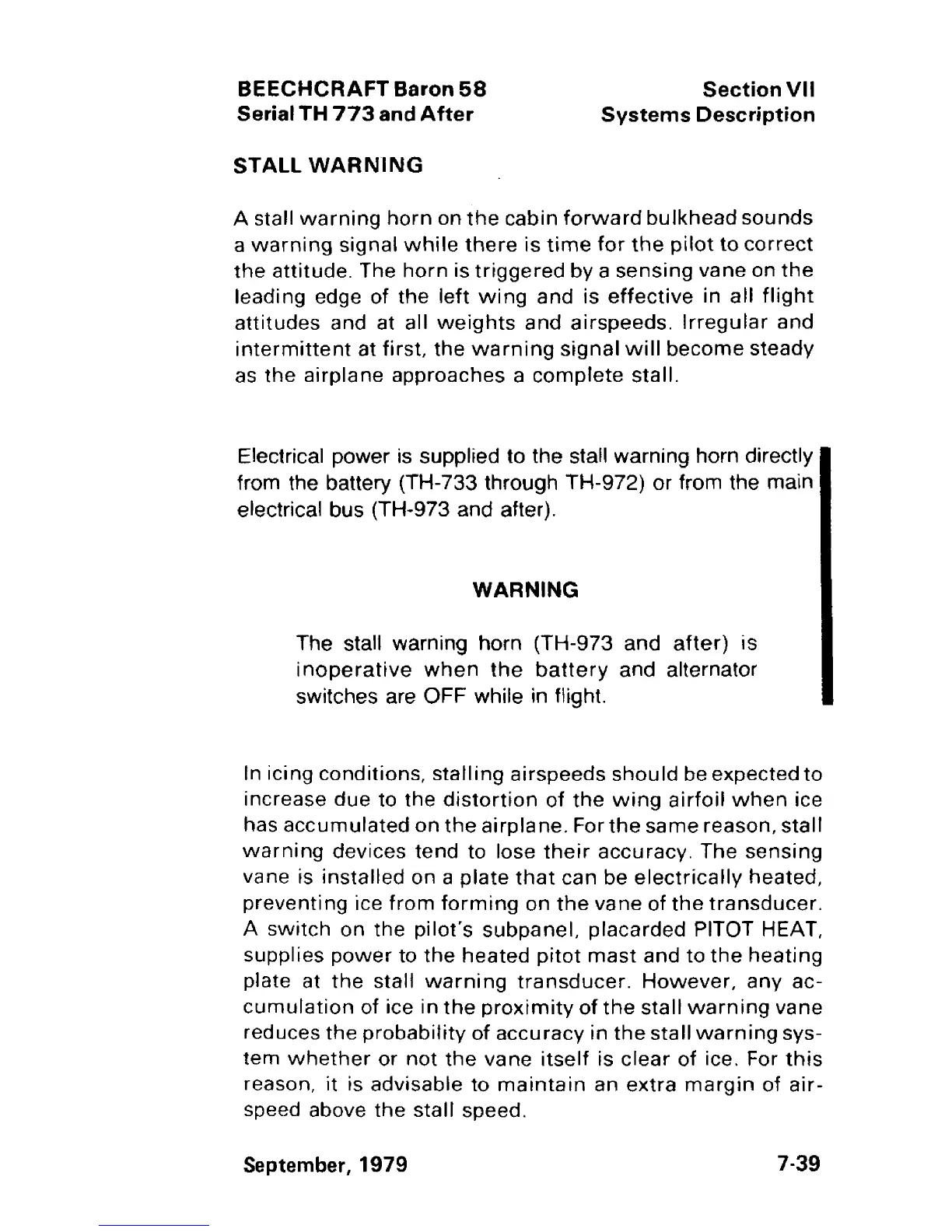 Beechcraft Baron 58 - Stall Warning
