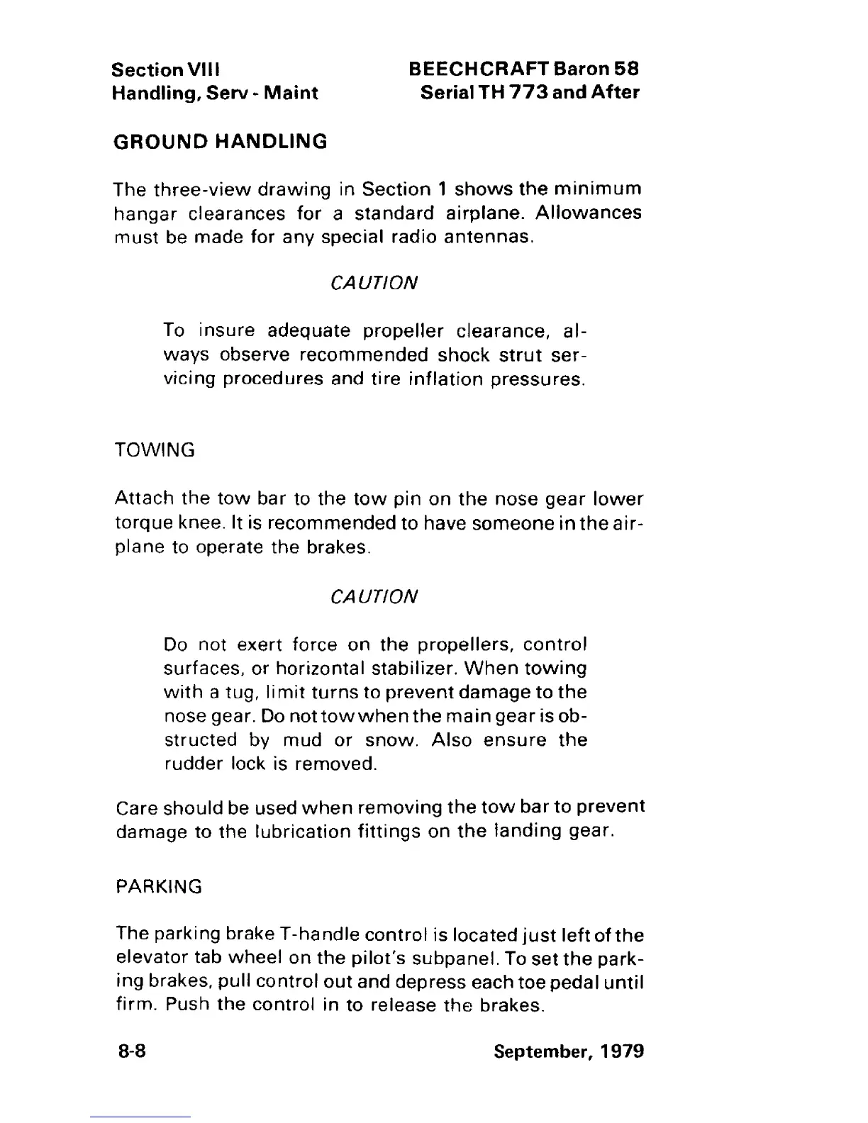 Beechcraft Baron 58 - Ground Handling; Towing; Parking