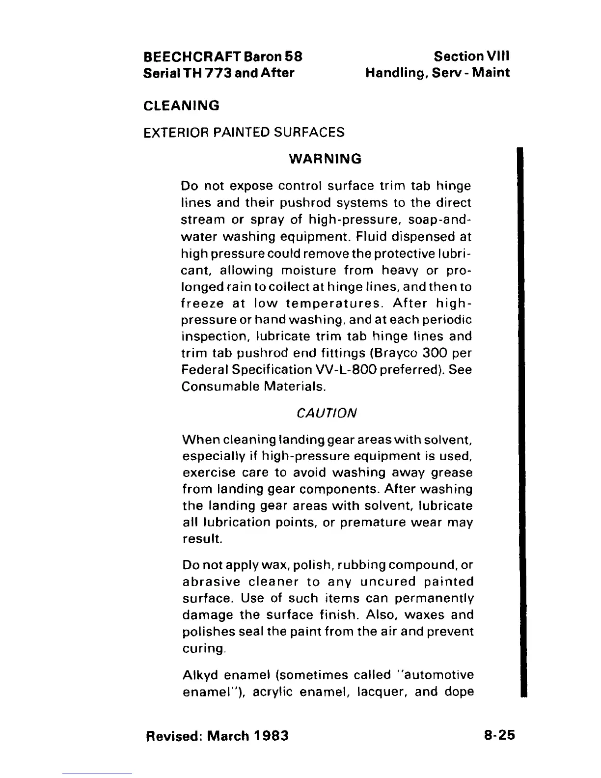 Beechcraft Baron 58 - Cleaning; Exterior Painted Surfaces