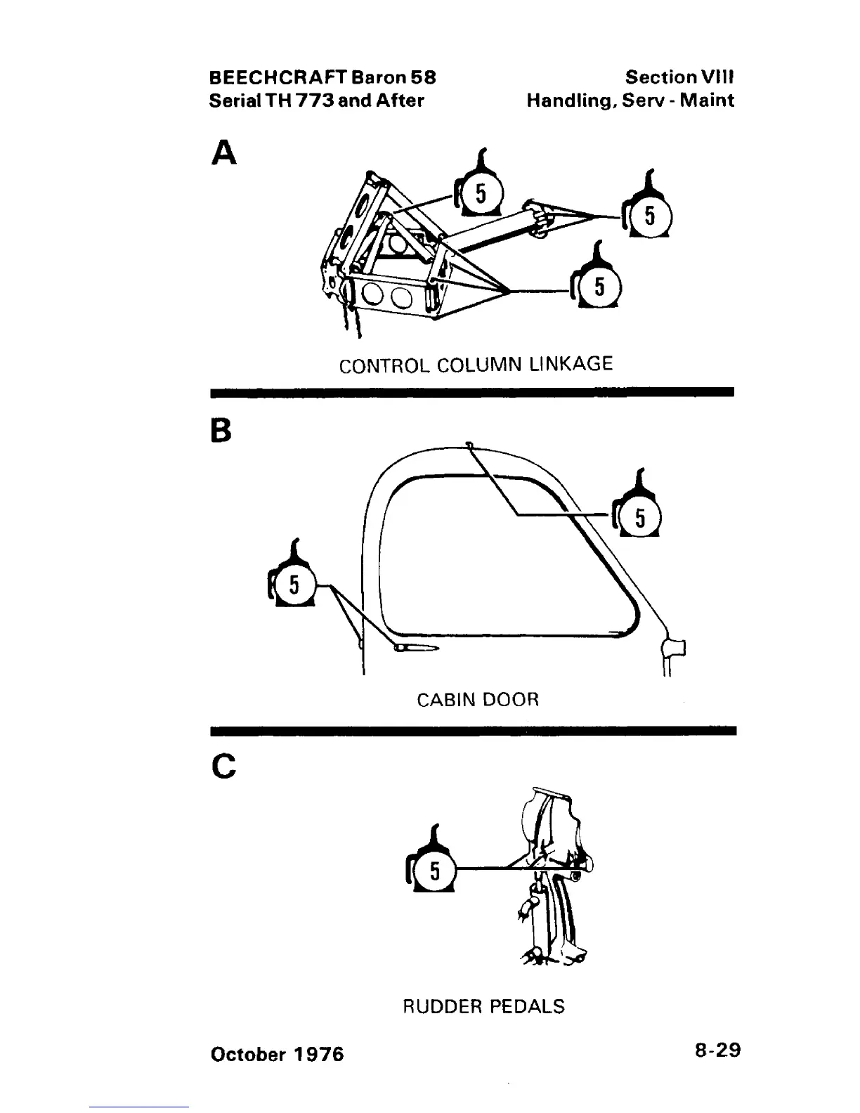 Beechcraft Baron 58 - Control Column Linkage; Rudder Pedals