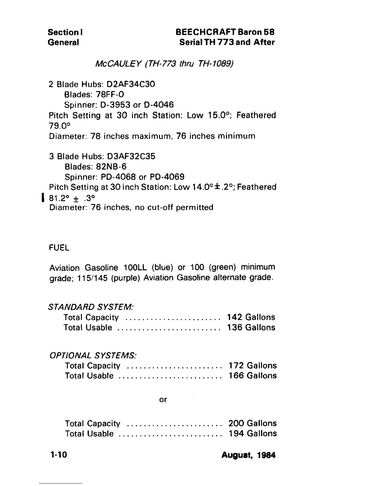 Aviation Gasoline 100LL (blue) or 100 (green) minimum