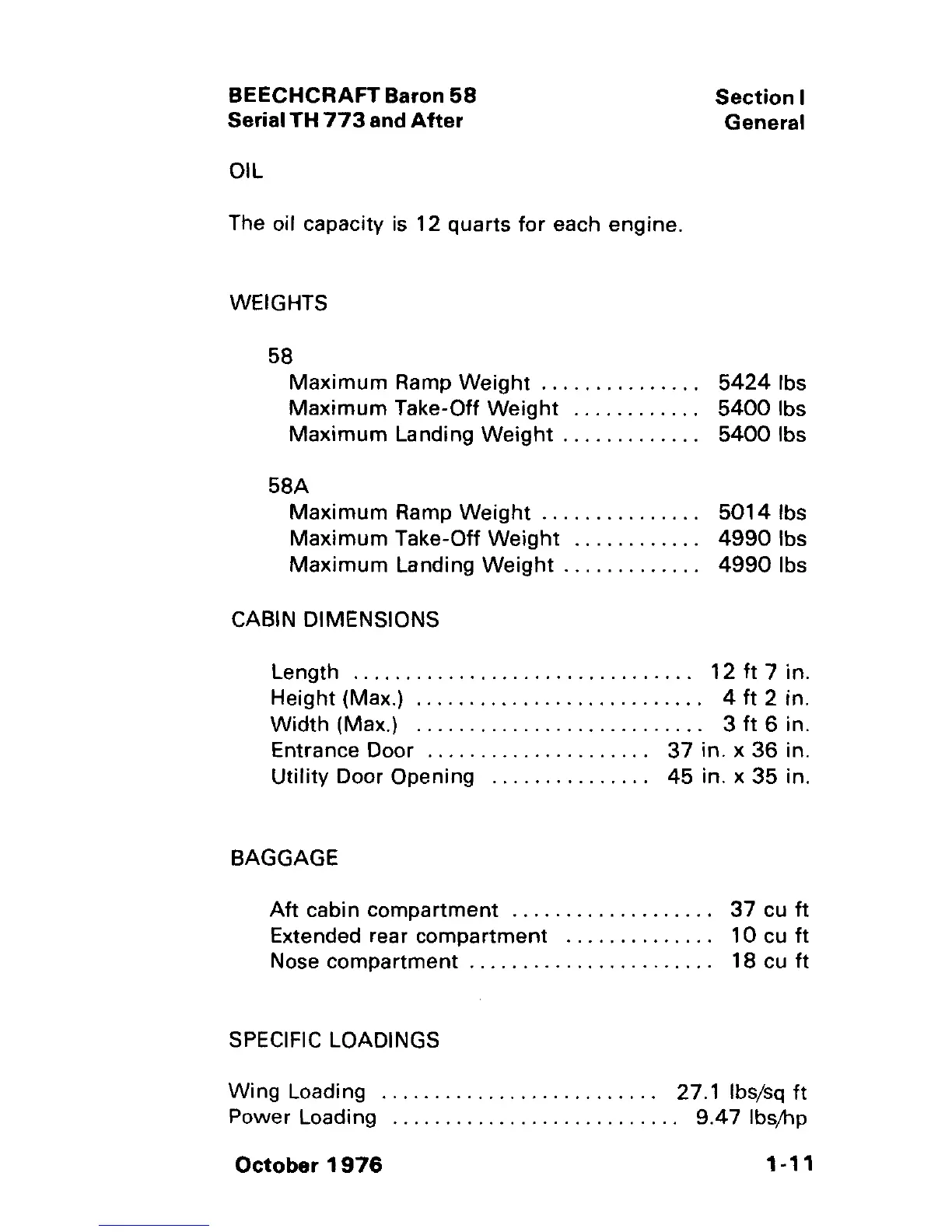 Wi ng Loading 27.1 lbs/sq ft