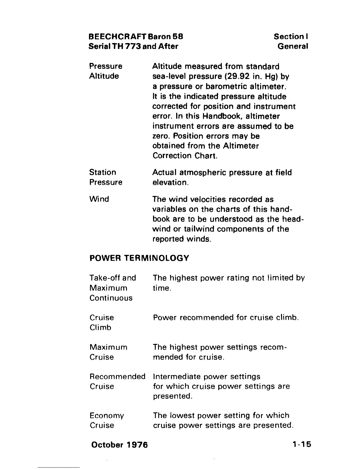 cruise power settings are presented.