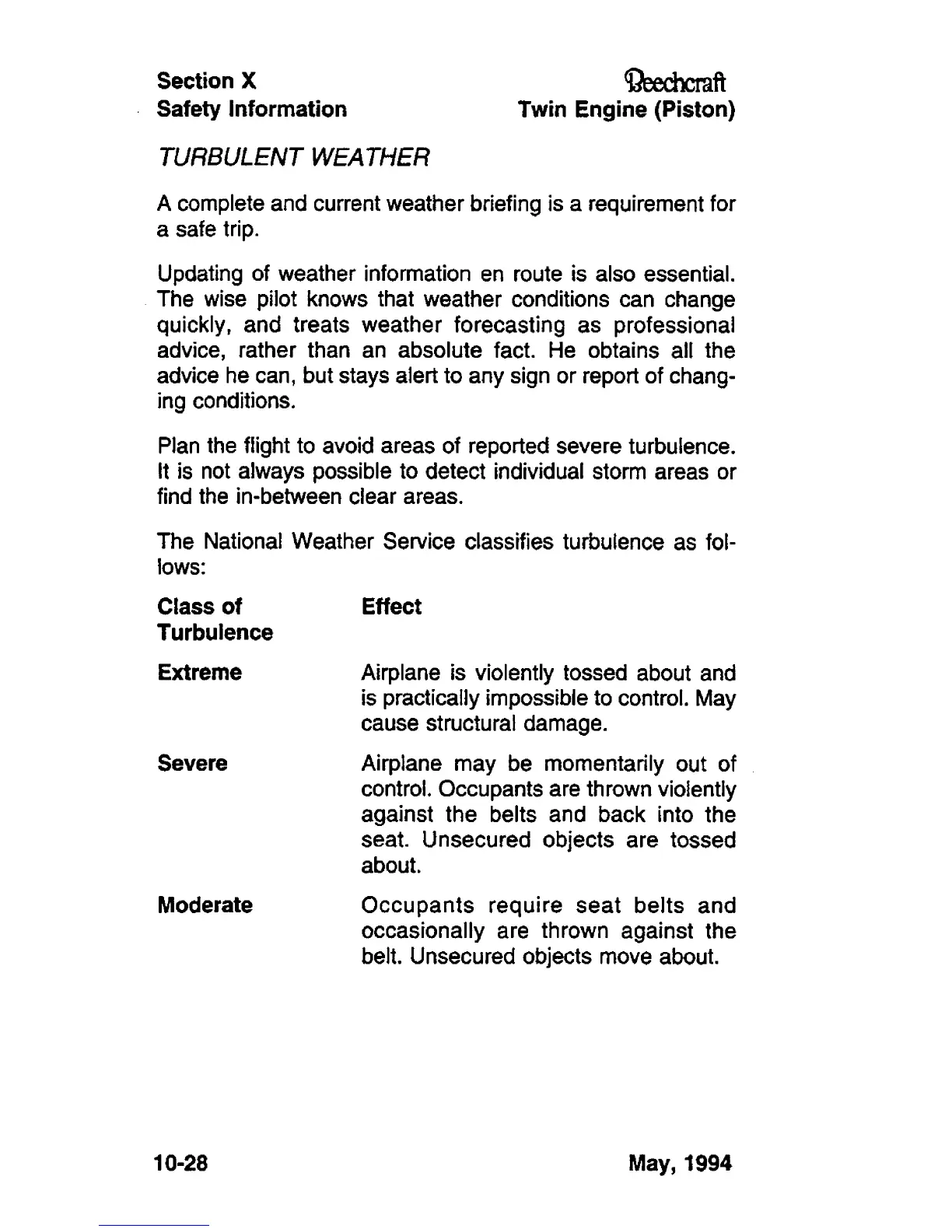 The National Weather Service classifies turbulence as fol-