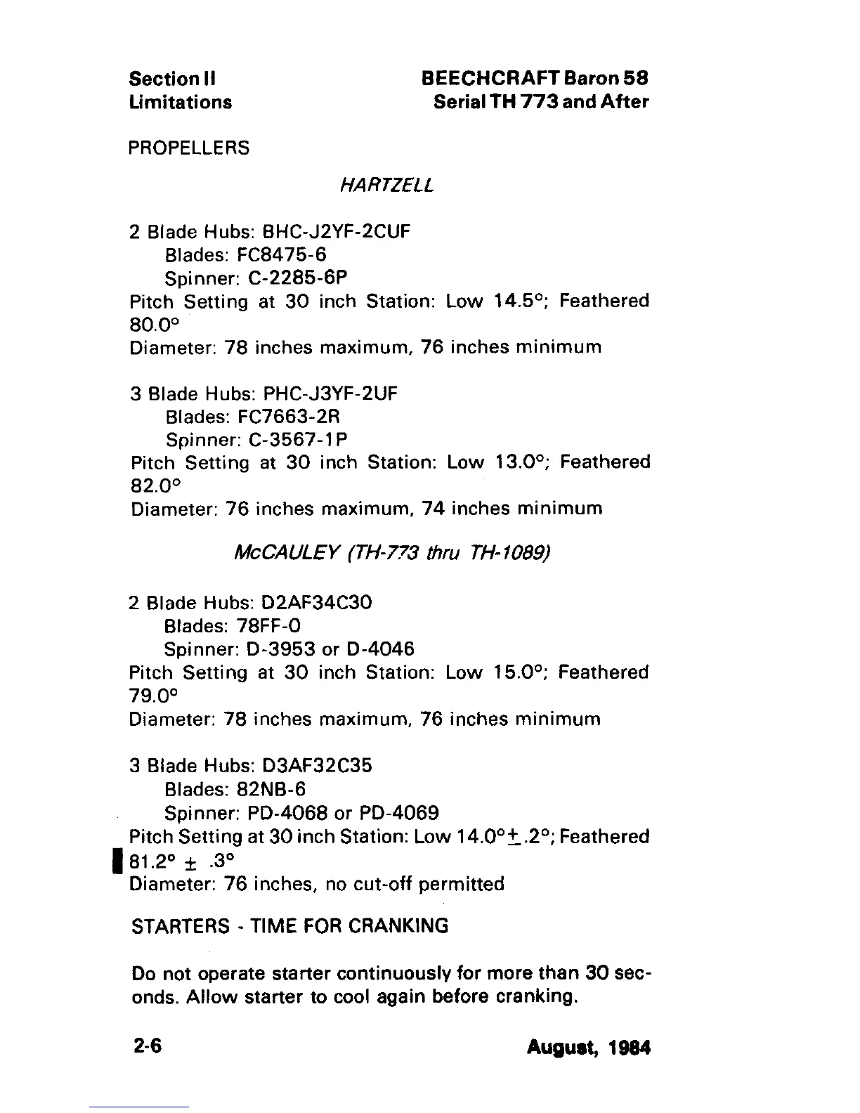 Pitch Setting at 30 inch Station: Low 15.0°; Feathered