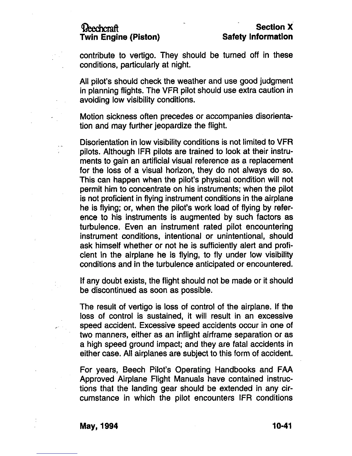 For years, Beech Pilot's Operating Handbooks and FAA