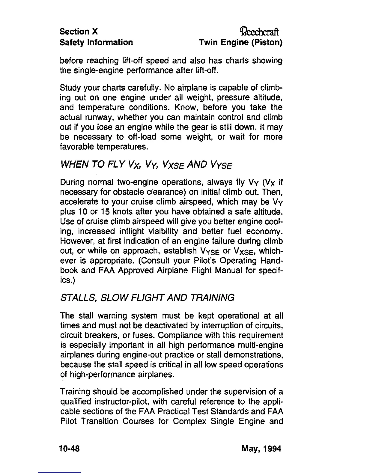 WHEN TO FLY Vx, Vy, VXSE AND VYSE