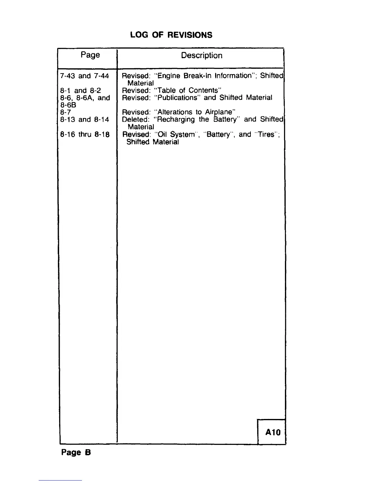 Revised: "Engine Break-In Information"; Shifted