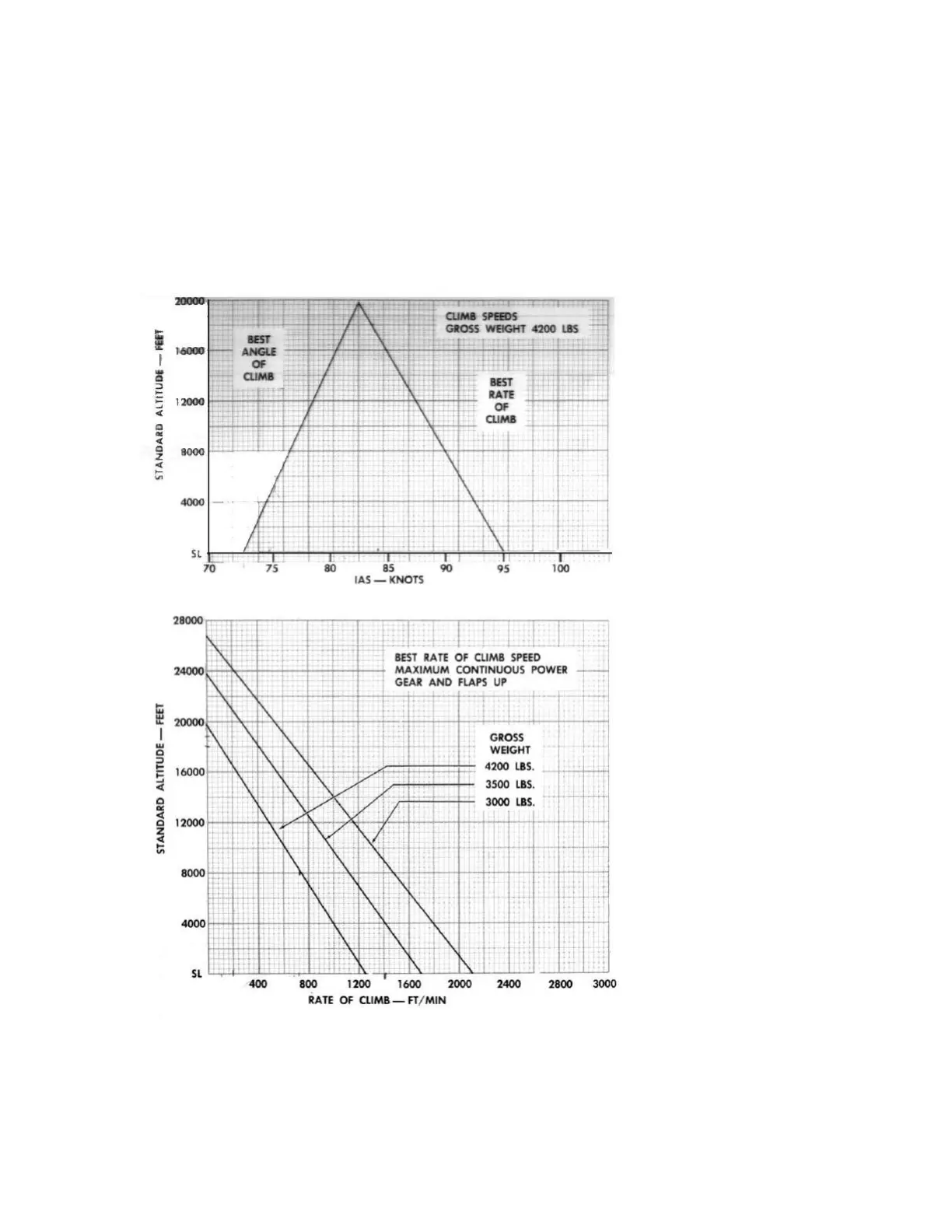 Airspeed Best rate as shown in upper part of graph, gives rate of climb shown in lower