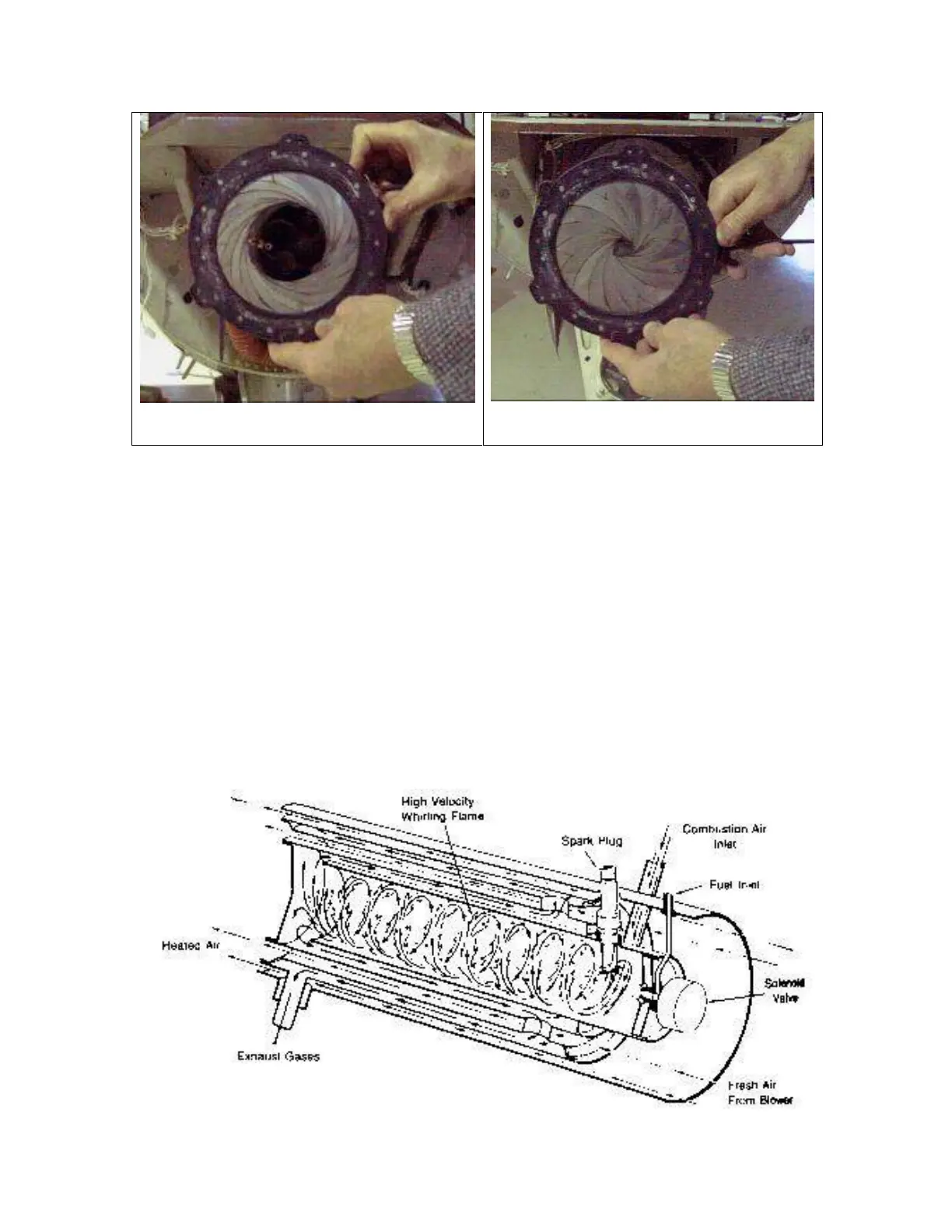 Air to be heated enters the heater through an iris valve in the nose of the airplane. This