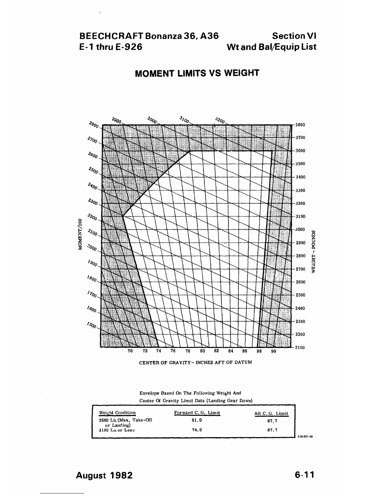 Beechcraft Bonanza 36 - Moment Limits Vs Weight