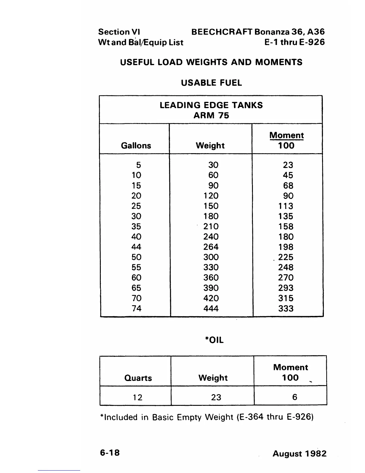 Beechcraft Bonanza 36 - Usable Fuel;Oil