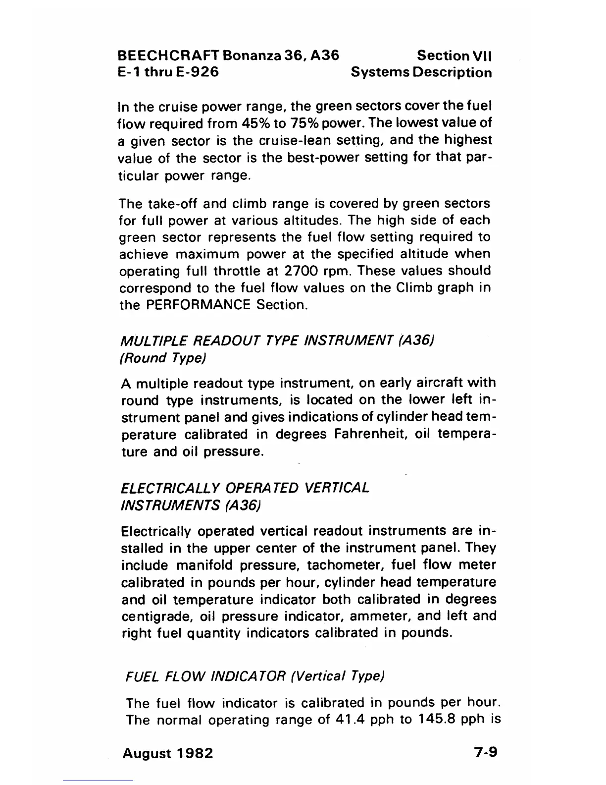 Beechcraft Bonanza 36 - Multiple Readout Type Instrument (A36) (Round Type); Electrically Operated Vertical Instruments (A36); Fuel Flow Indicator (Vertical Type)