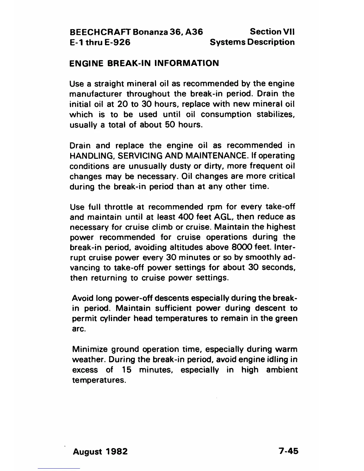 Beechcraft Bonanza 36 - Engine Break-In Information