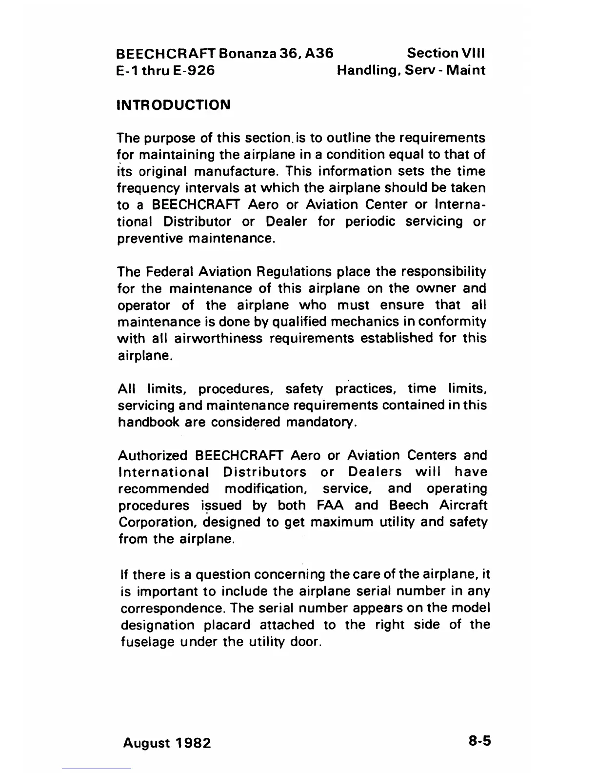 Beechcraft Bonanza 36 - Aircraft Handling and Storage Procedures