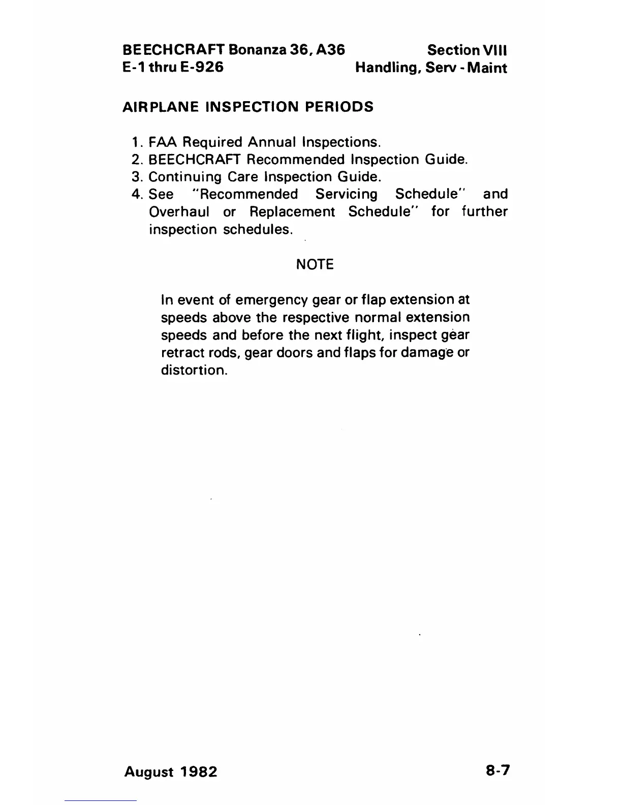 Beechcraft Bonanza 36 - Airplane Inspection Periods