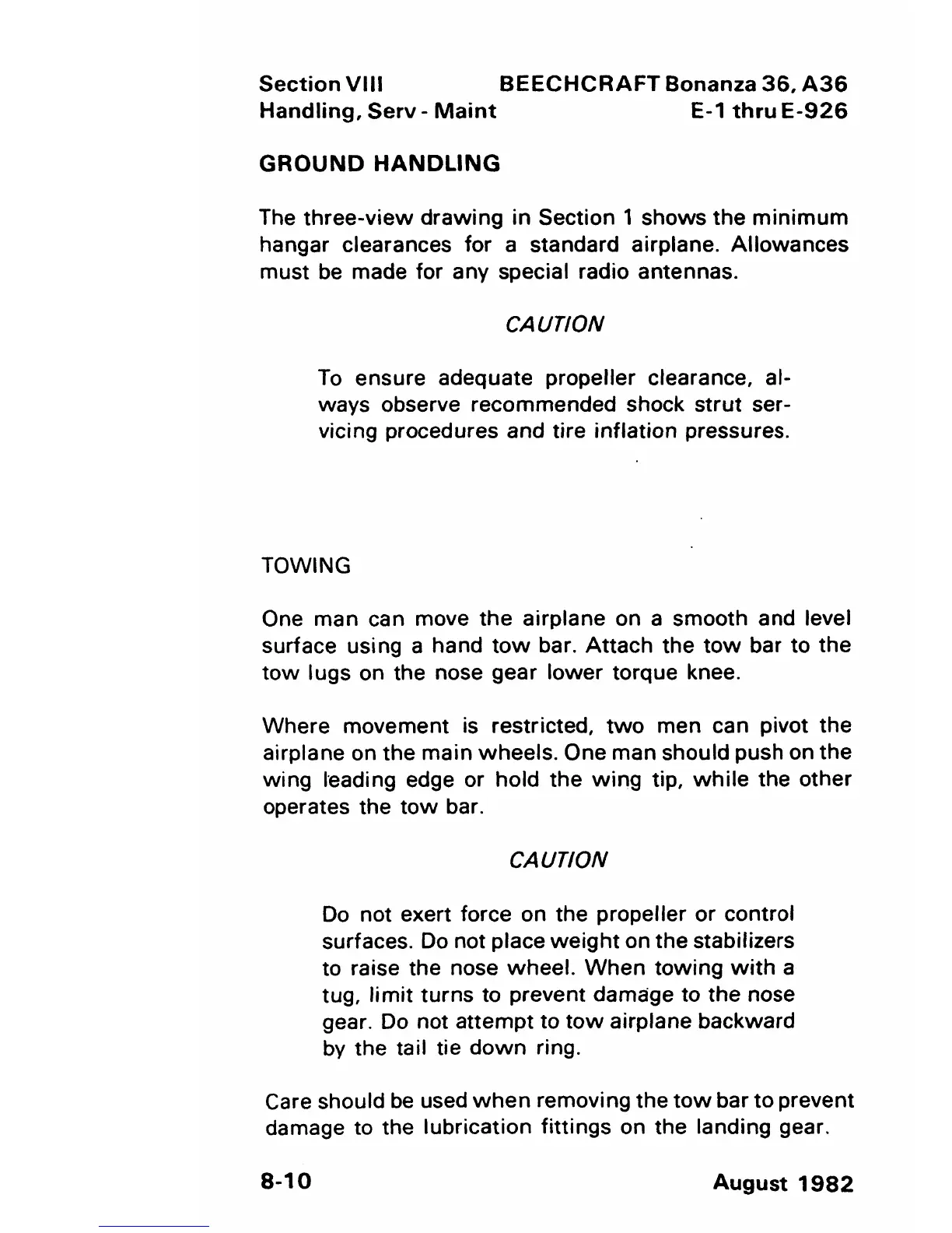 Beechcraft Bonanza 36 - Ground Handling; Towing