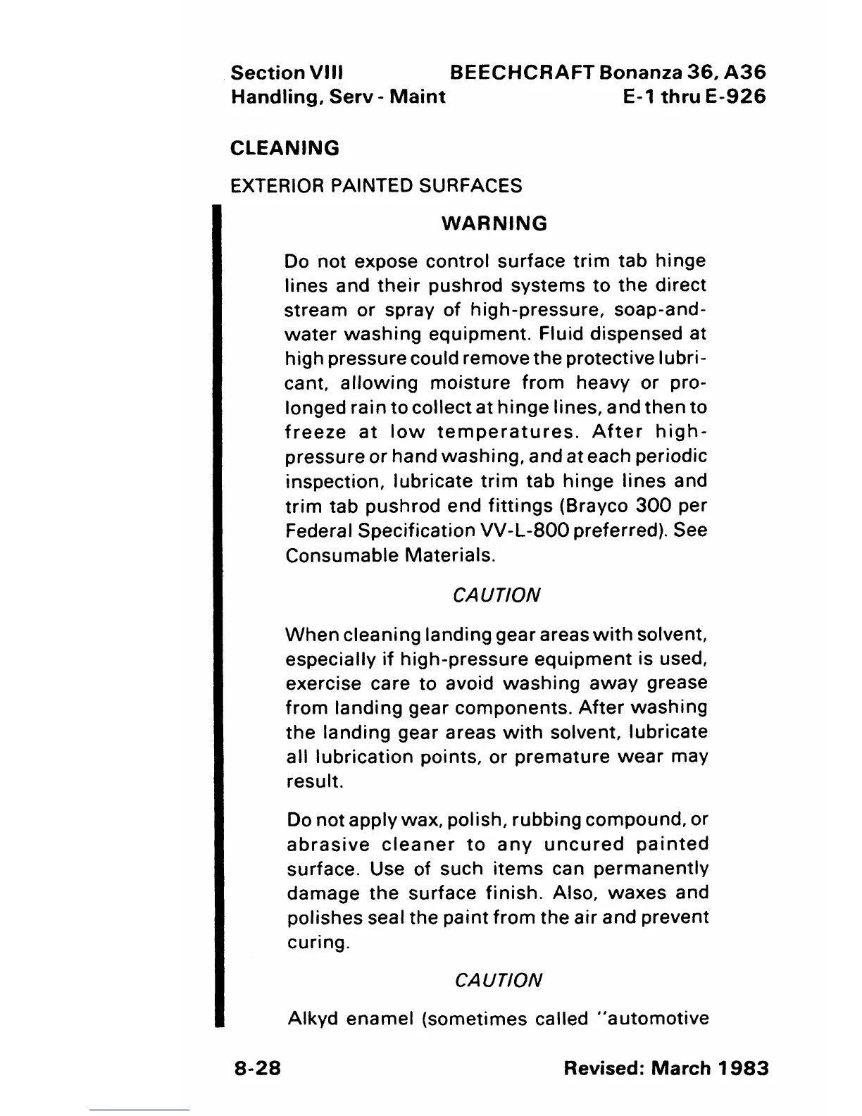 Beechcraft Bonanza 36 - Cleaning; Exterior Painted Surfaces Cleaning